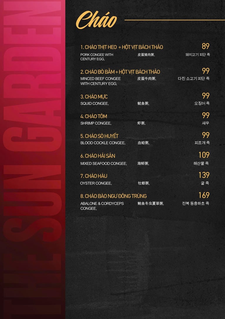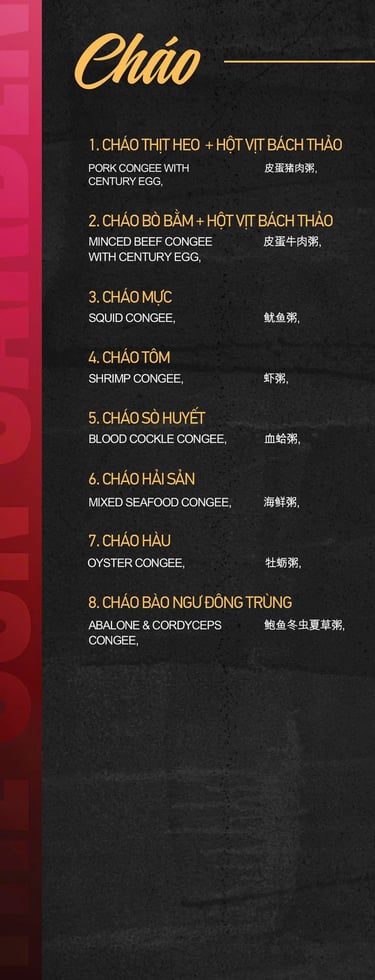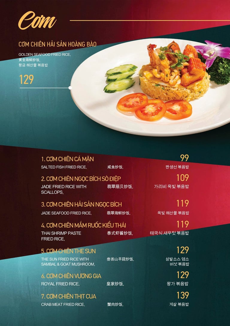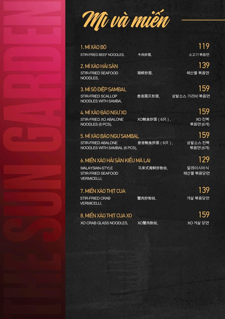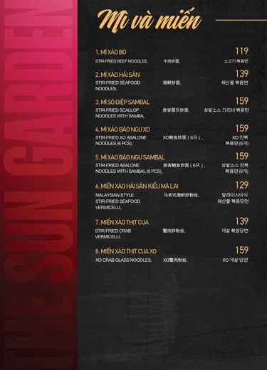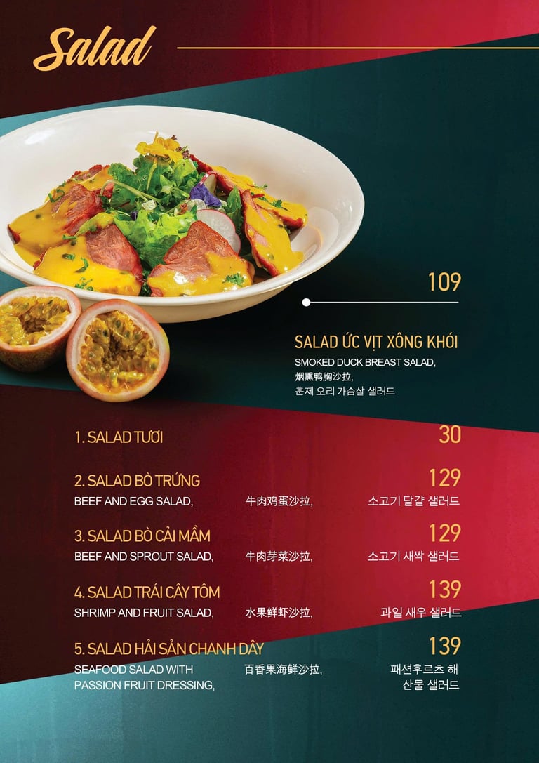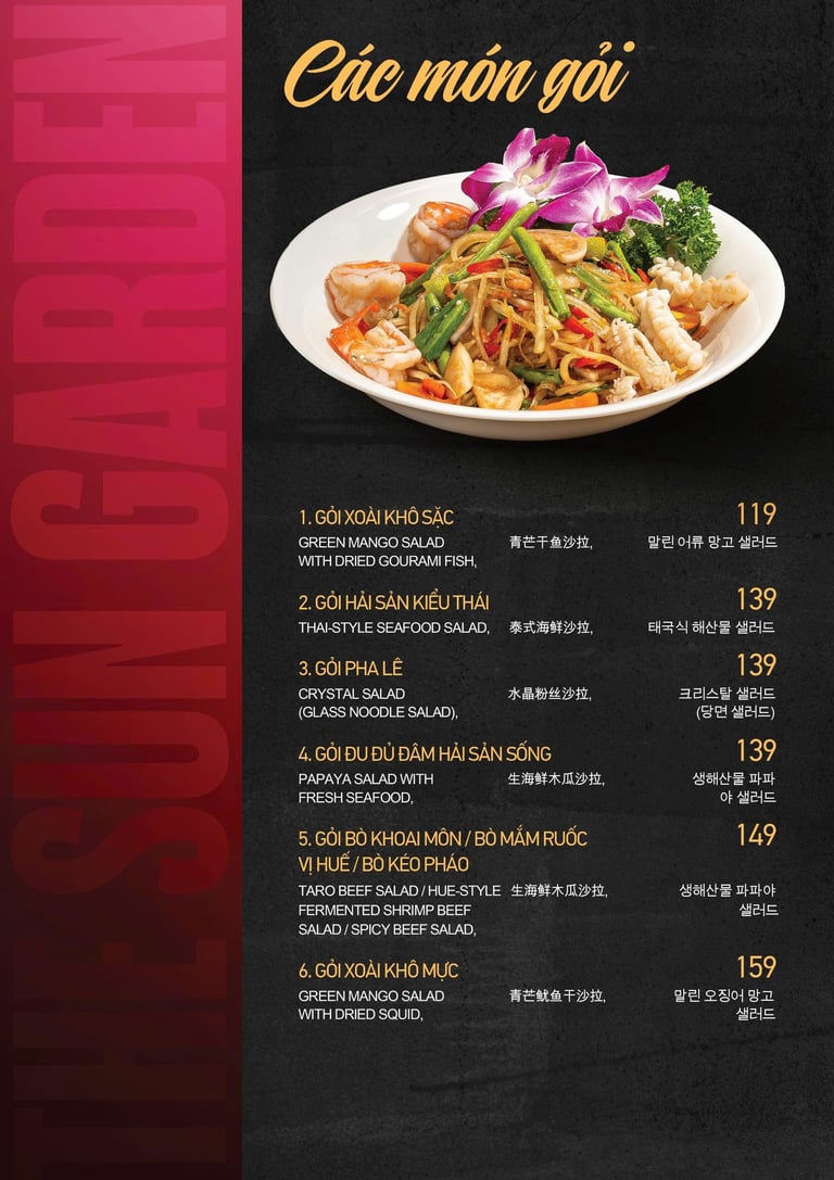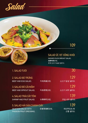 MENU CƠM, MÌ, SALAD, CHÁO, GỎI...