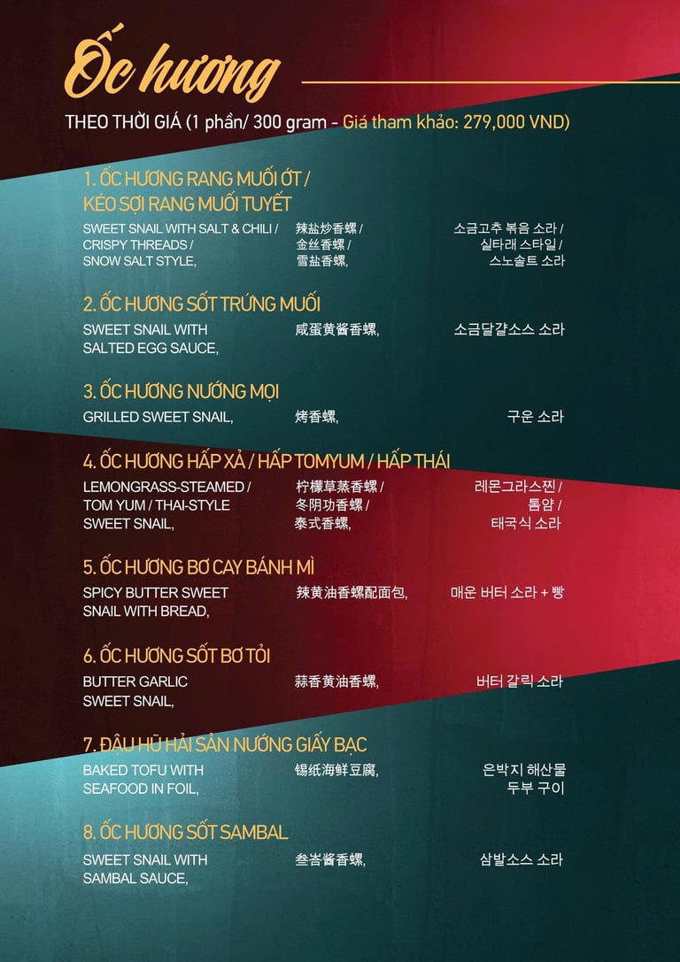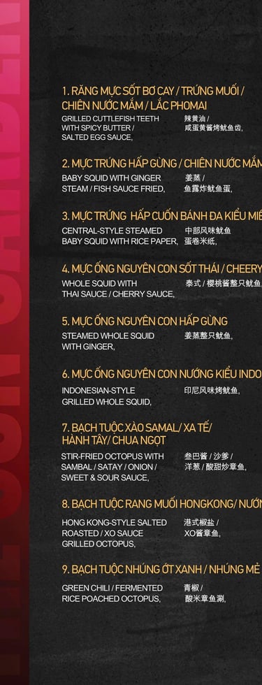 MENU HẢI SẢN